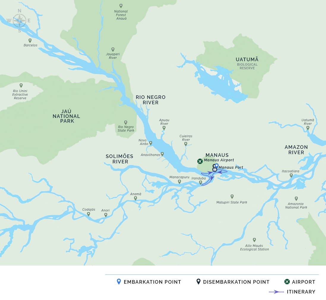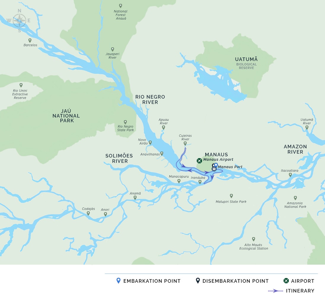 Acqua 3-Day Anavilhanas Cruise Itinerary Day One - Embarkation.