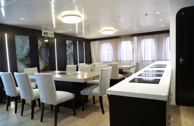 Sharing this adventure with just 16 guests onboard the Alya catamaran will make for an enriching and enjoyable voyage that you will never forget. The luxurious and comfortable social areas on the boat are the perfect place to share your experiences with your fellow travelers and make new friends. After the day’s excursions, you can settle in for a movie night in the lounge, sign in to the all-new Mydas App, which offers onboard entertainment such as movies, digital books, and educational material, or swap stories over a delicious meal and a signature cocktail.