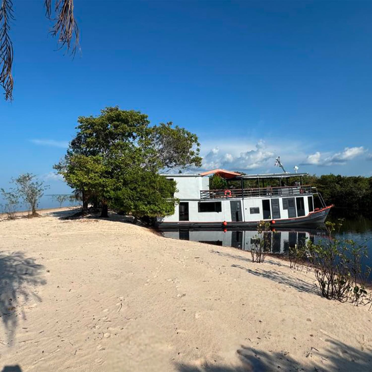 Experience the Amazon Rainforest like never before aboard the Amazon EcoBoat, a unique 6-person riverboat designed for privacy, comfort, and sustainable travel. Nestled on the Rio Negro in Brazil, this elegant, solar-powered riverboat combines traditional charm, contemporary design, and eco-conscious innovation to offer an unforgettable Amazon journey for families, friends, or small groups.