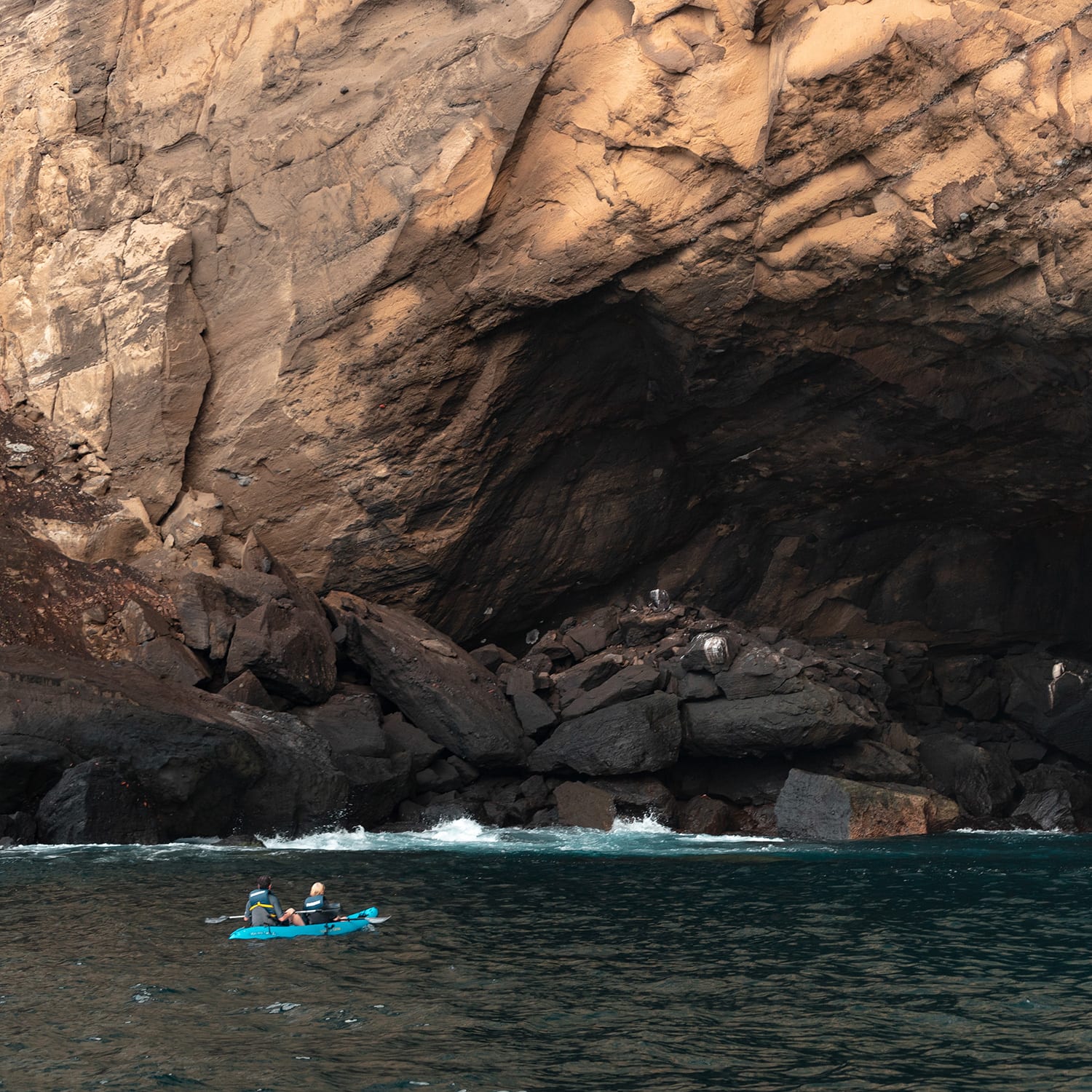 PM: As Aqua Mare crosses the Bolivar Channel back towards Isabela Island, prepare to channel your inner pirate for the afternoon excursion visiting Caleta Tagus, once a favorite anchorage spot for pirates and whalers. Here we will hike to see Darwin Lake, a saltwater lake trapped inside a tuff cone. If you would rather not hike, you can take your pick from our eight double kayaks, snorkeling, stand-up paddleboarding, or a ride on our elegant black tenders to explore the cave and its surroundings. Return to the yacht for evening sundowners and head to the bridge after dinner for a chat with our captain as we cross the equatorial line twice while rounding the top of Isabela Island sailing to our next anchorage point.