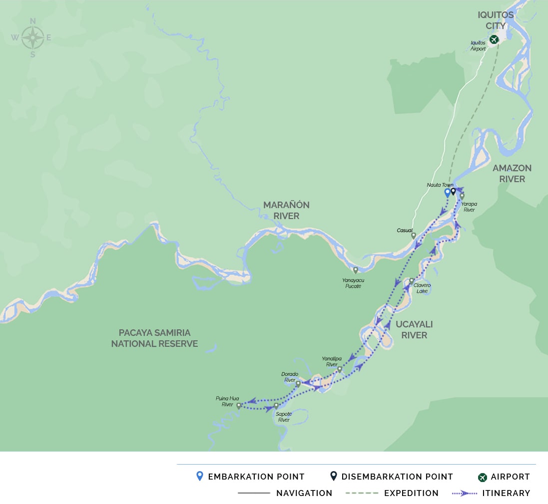 From June to October: Clavero Lake – Ucayali River – Yarapa River
