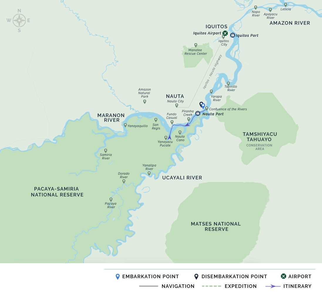 From June to October: Iquitos – Nauta – Embarkation – Marañon River
