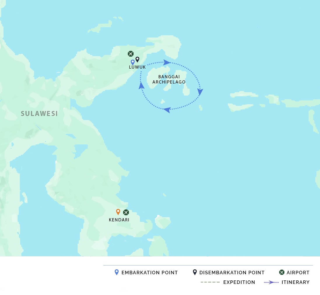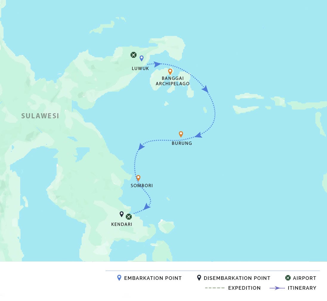 AM: We will arrive at the harbor of Luwuk in the early morning. After breakfast, we will say farewell to the crew and be transferred to the airport for the return flight to Bali.