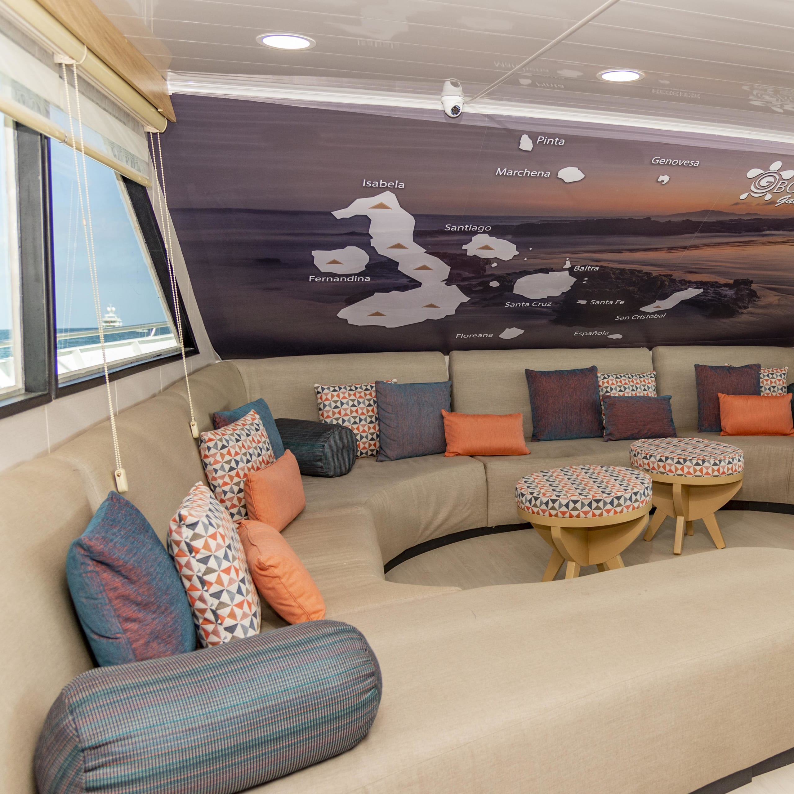 After full days of adventure accompanied by your acclaimed expert naturalist guide participating in all manner of activities such as hiking, snorkeling, paddle-boarding, kayaking, and boating around the mangroves of Galapagos, guests can relax in the inviting social areas, which includes the indoor lounge, dining room, library and fully-stocked bar, or simply enjoy the sea-breeze on the outdoor terrace or relax on the sundeck with its comfortable lazy-chair loungers and sunbeds and spectacular 360° views.