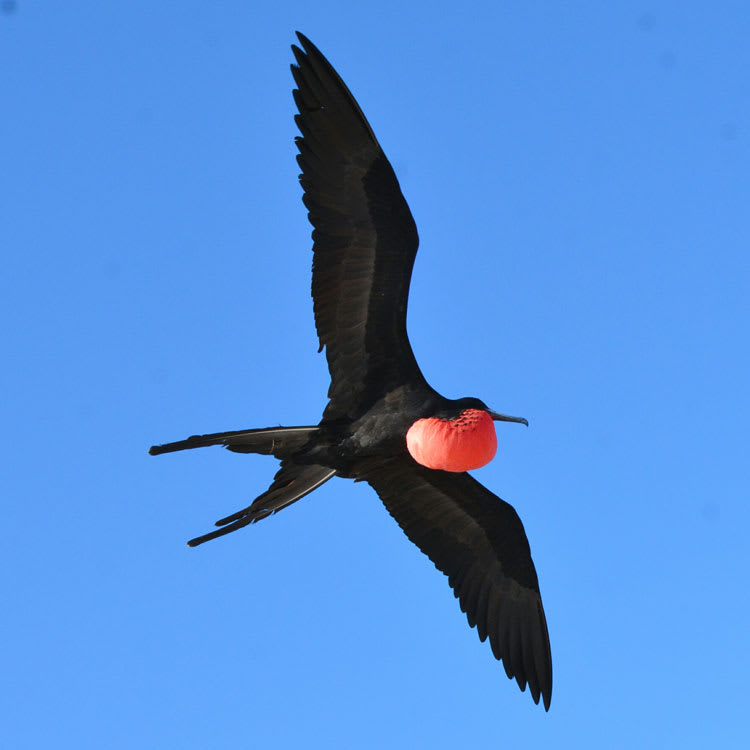 PM: Disembark onto a small sand and coral beach. A short trail heads west along a tidal lagoon and then up a rocky hill that leads to a point overlooking the cliffs and Darwin Bay. Along the trail near the tidal lagoon, visitors will see pairs of Swallow-tailed Gulls, Lava Gulls, Yellow-crowned and Lava Herons. The trail continues through Palo Santo trees, Opuntia cacti, and Saltbushes inhabited by Great Frigate birds and Red-footed Boobies. This is one of the few places in the islands where visitors are guaranteed to see Red-footed Boobies. It is estimated that more than 200,000 Red-footed Boobies live in the trees and bushes of Genovesa.