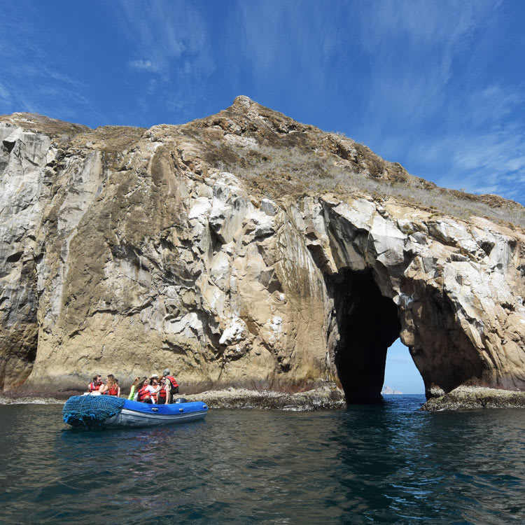AM: Great deep-water snorkeling at one of the richest marine havens on Earth, the Bolivar Channel. Accessible by water, we take a dinghy ride along the coast to observe a great diversity of sea and coastal birds; Nazca and blue-footed boobies, noddies, brown pelicans, penguins, and flightless cormorants. The upwelling of cold water currents in this part of the Galapagos gives rise to an abundance of marine life, a perfect place for deep snorkeling.