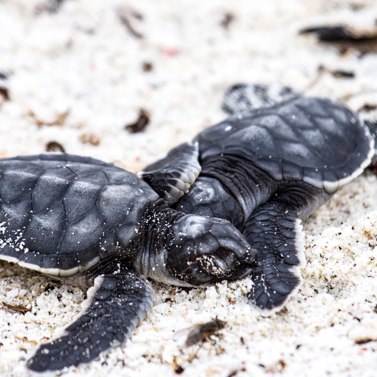 AM: On the north side of Santa Cruz; behind the beach lies two small flamingo pods where iguanas sunbathe, see coastal birds, Darwin finches, mockingbirds, and gulls, as well as interesting native vegetation like red and black mangrove, salt bushes. This bea is one of the main sea turtles nesting sites in the Galapagos. A turtle can lay eggs 3 or 4 times per season with an average of 70 eggs each time. At this paradisiacal site, we will also find the remains of barges that sang along time ago, when the United States Navy operated a base during World War II on Baltra Island. Local people modified the word barges to "Bachas".