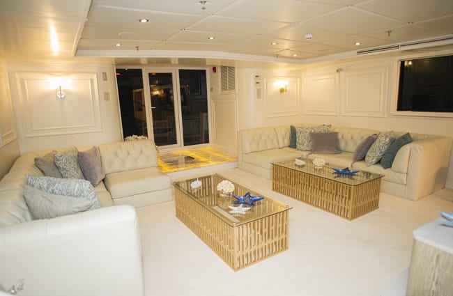 Indoor and outdoor dining and lounge areas ensure guests are spoilt for choice. While the yacht’s al fresco sundeck located on the uppermost deck boasts a decadent hot tub and comfortable lounge area ideal for whiling away the afternoon. Meticulously appointed air conditioned accommodation includes four beautiful cabins and two exquisite suites, all featuring either portholes or windows, ensuite bathrooms with luxurious showers, and vanities to complete the space.