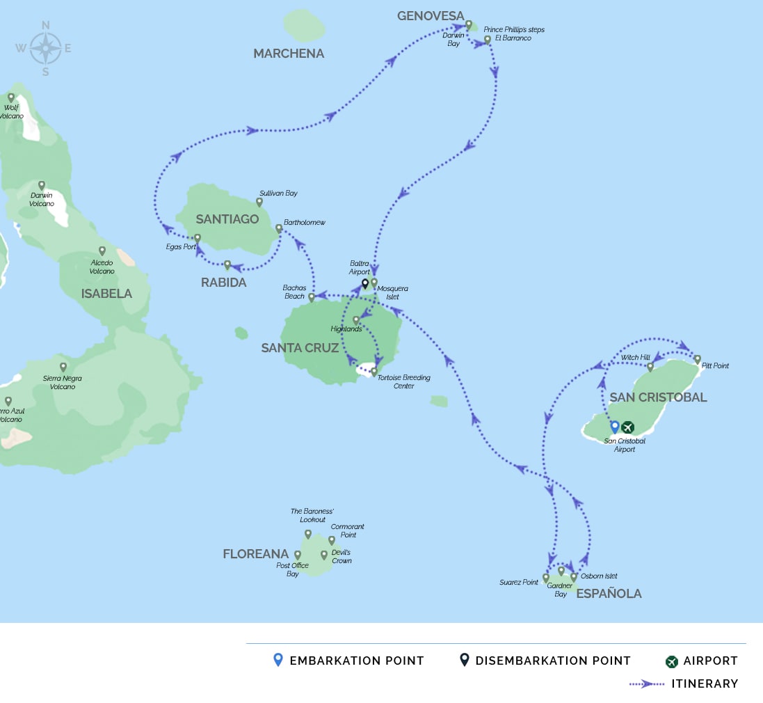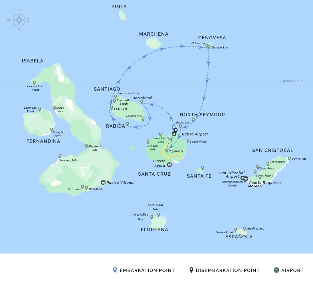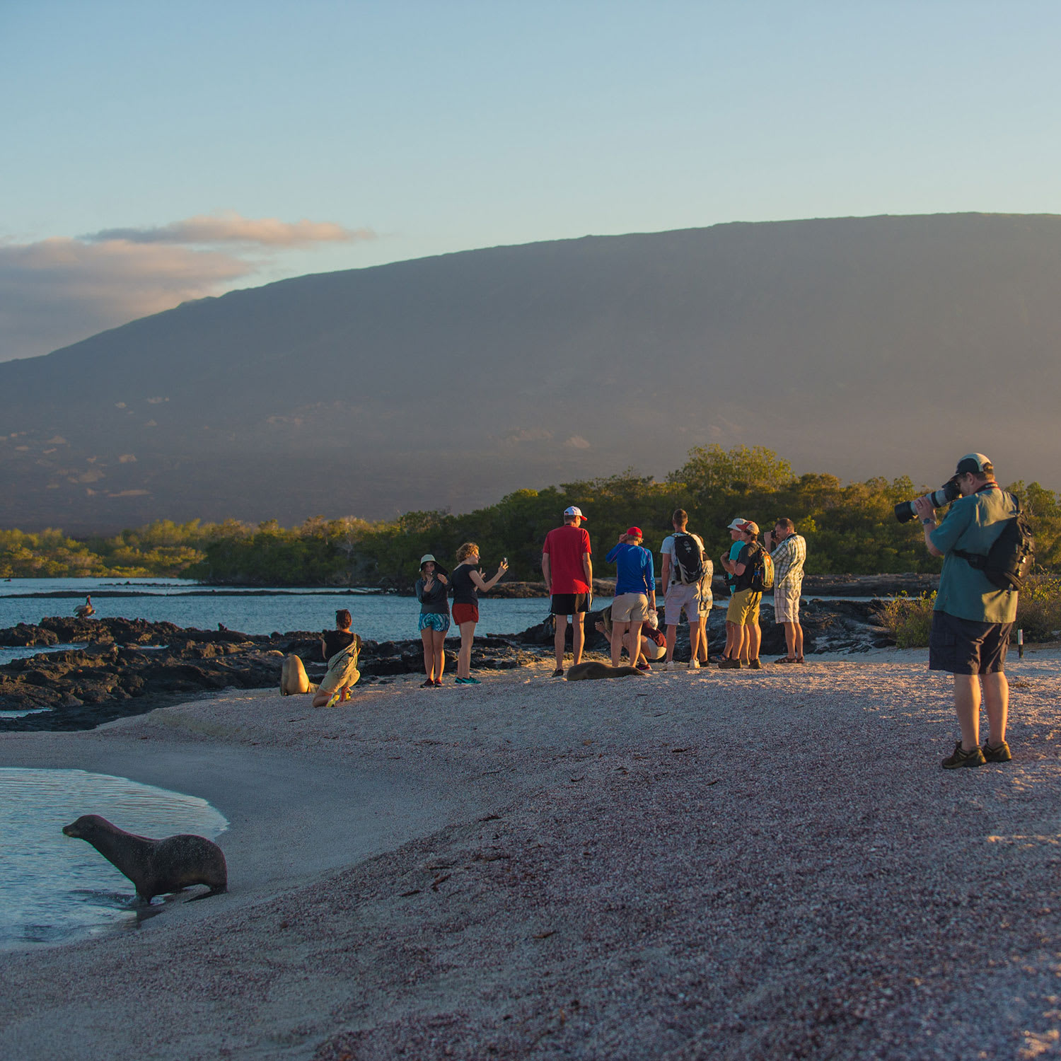 PM: This excursion takes you to the spectacular Gardner Bay. After landing, you can walk across a lovely white-sand beach amongst a busy sea lion colony or dive into the water to swim with sea lion pups. You may also see curious mockingbirds on the beach.
