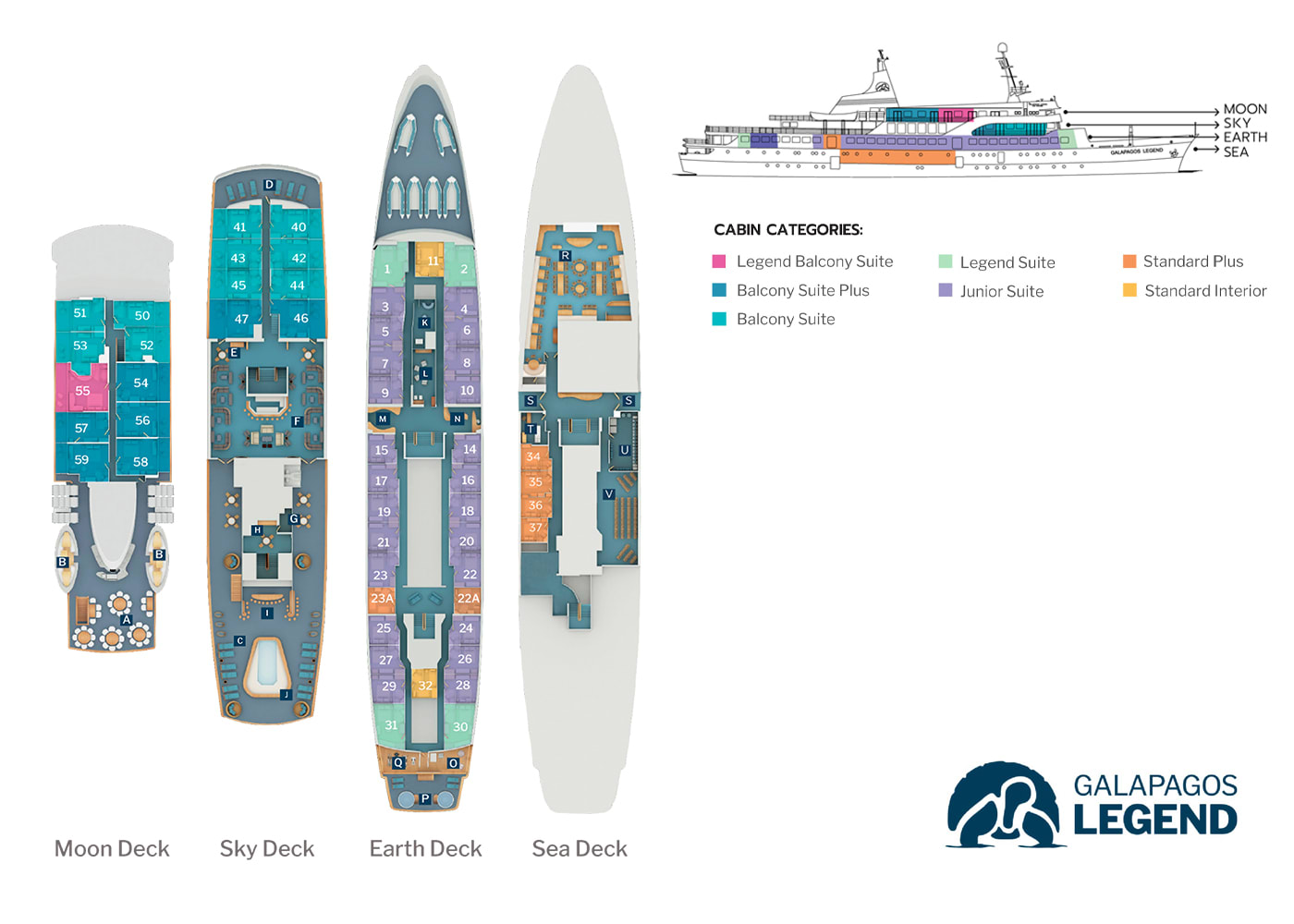 For a vacation that is just as thrilling on board as off, the MV Galapagos Legend is the place to be. And, with a wide range of cabins available, ranging from cozy interior rooms to the massive Legend Balcony Suite, you are sure to find a room to suit your style and budget.