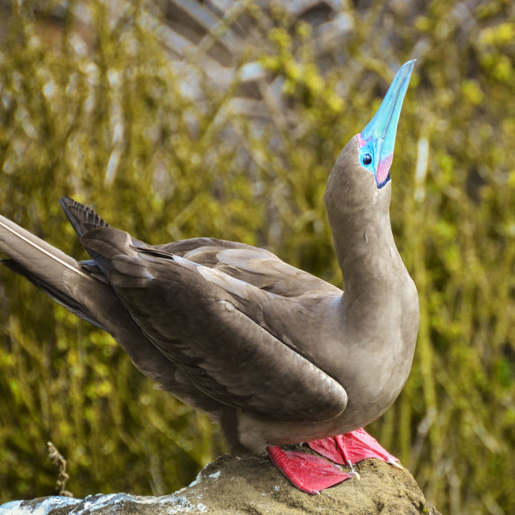PM: This flat, uplifted island, is an important spot to see both magnificent and great frigatebird males courting the females by clicking, bill-clapping, shuddering, and flapping their wings, all while showing off their grossly inflated, bright red, gular pouch. We will also likely see courting blue-footed boobies displaying their unique feet. Seal lions, swallow-tailed gulls, crashing surf, and distant views of the Daphne Islands top off a great visit.