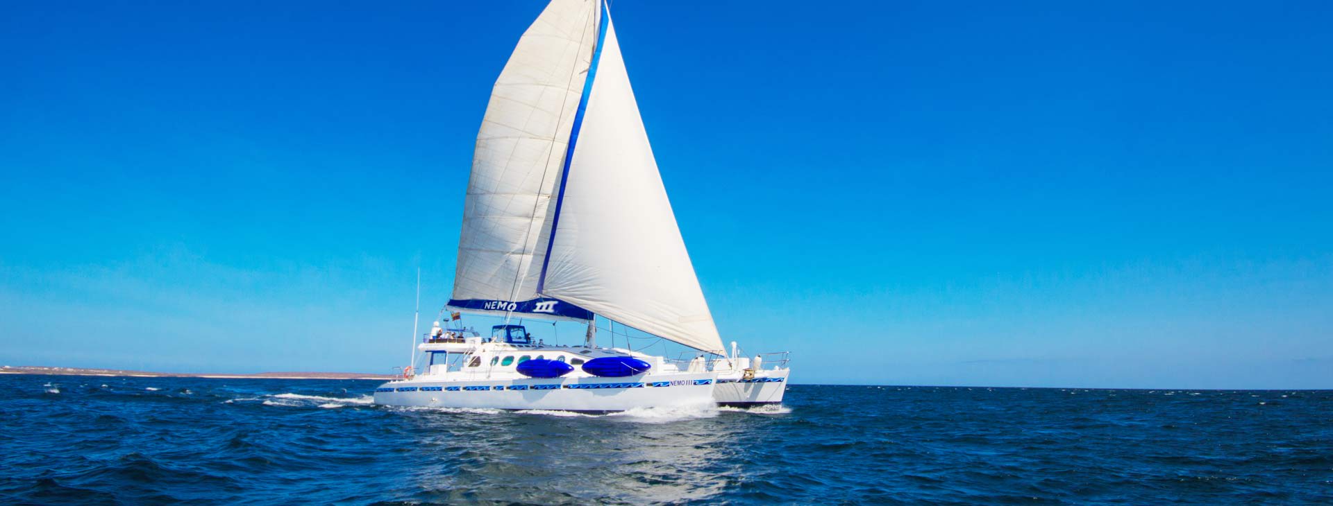 Are you looking for a Galapagos cruise that combines comfort, stability, and adventure? The Nemo III offers all of that and more. With the sails unfurled, this 75–foot twin-hulled catamaran glides smoothly through the waters of the Galapagos Islands with up to 16 passengers aboard.