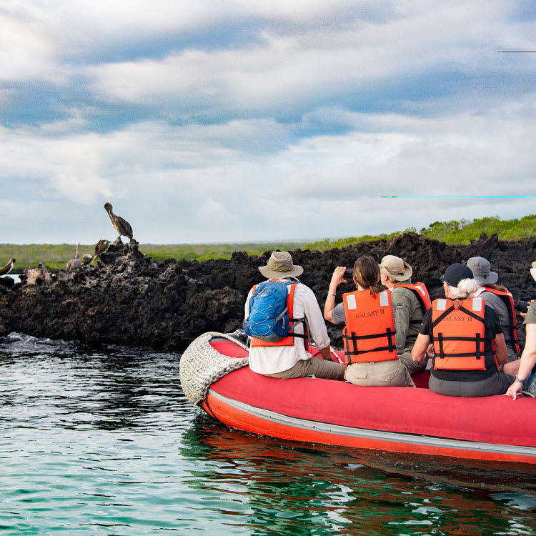 AM: Espinoza Point is a true natural wonder, set at the base of the most active volcano in Galapagos. As you step ashore, you’ll be greeted by the largest colony of marine iguanas basking on black volcanic rocks. Sea lions lounge on the beach while their pups explore tide pools. Flightless cormorants patrol the shoreline, and in the mangroves, Galapagos hawks scan for prey. Blessed with cold, plankton-rich waters, this area teems with life—herons, oystercatchers, pelicans, and sea turtles all thrive in this untouched habitat.