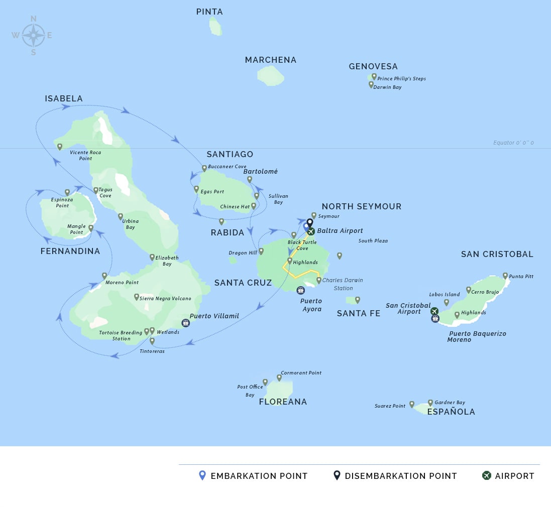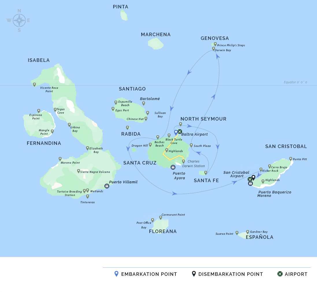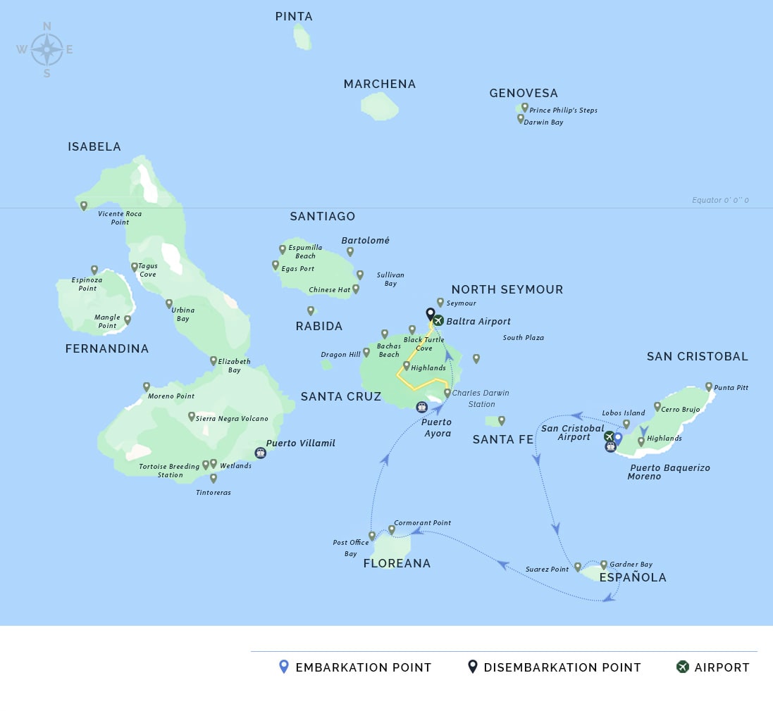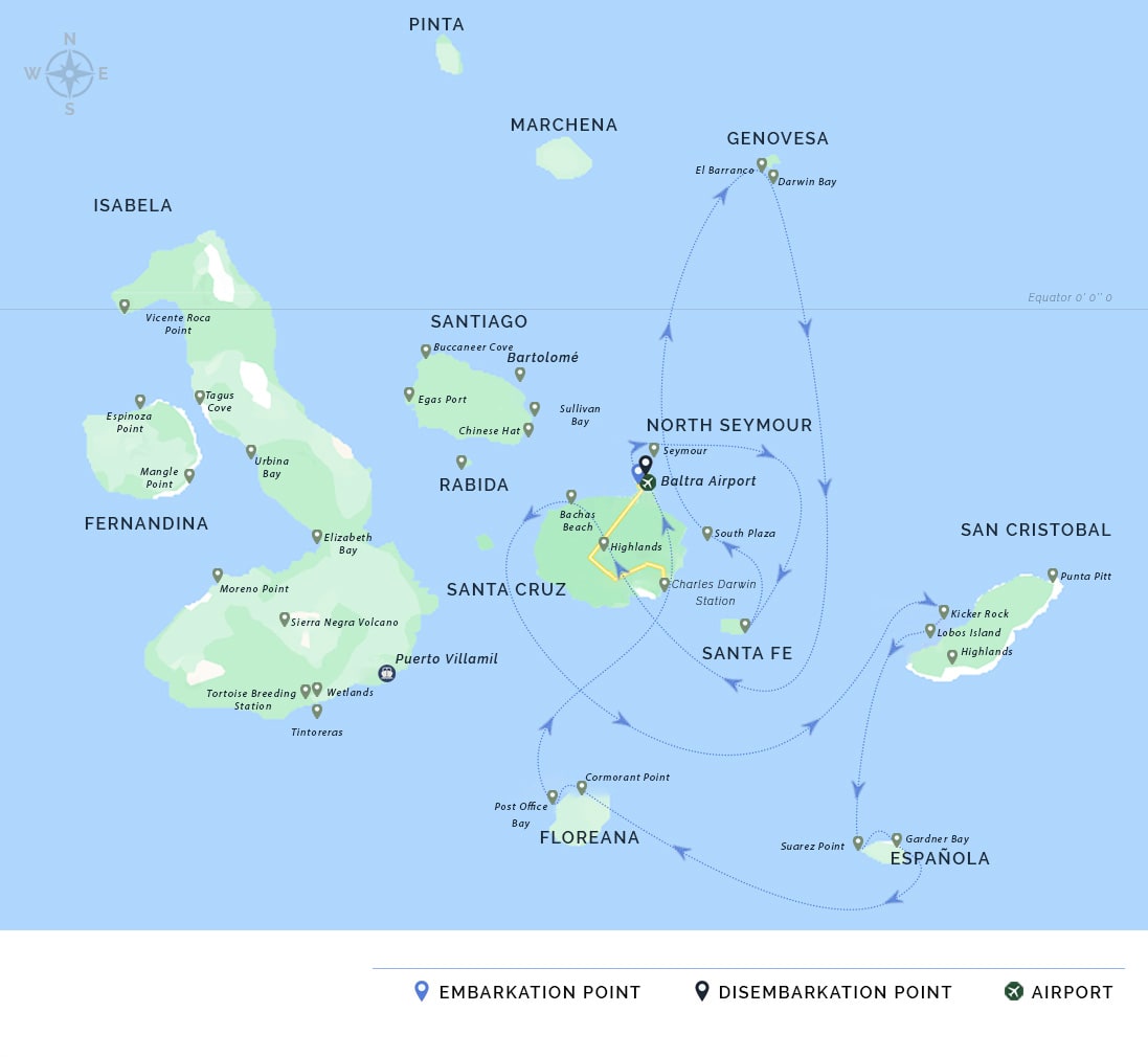 PM: Your Galapagos adventure comes to an end. Today, you will be transferred to Baltra Airport, where your National Park naturalist guide will assist you with final details before your flight back to mainland Ecuador. As you bid farewell to this paradise, take with you the unforgettable memories of one of the world’s most extraordinary destinations.