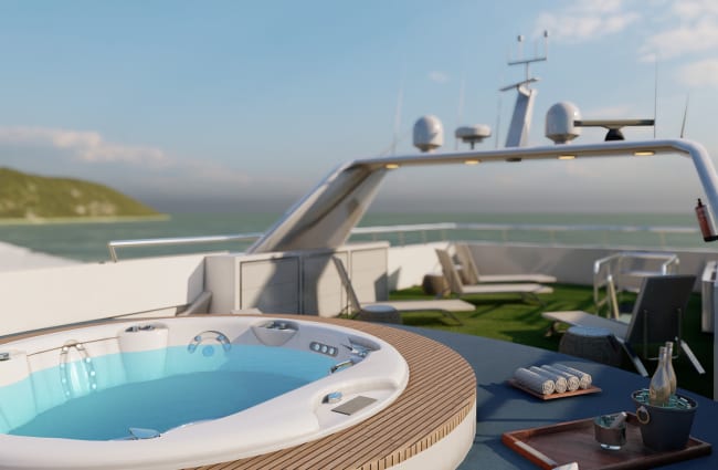With just eight cabins this yacht ensures an exclusive and intimate atmosphere. Each cabin is elegantly designed, with all but one on the lower deck featuring large windows providing panoramic ocean views, while en-suite facilities and plush bedding add a touch of luxury.