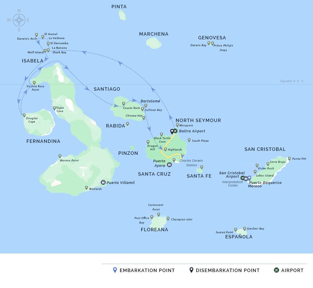 The naturalist itinerary showcases the islands’ unique landscapes and wildlife. Highlights include walking among marine iguanas at Fernandina, observing blue-footed boobies on Isabela, and snorkeling with playful sea lions at Rabida. Guided hikes to volcanic craters and visits to the Charles Darwin Research Station offer insights into the islands’ geology and conservation efforts.