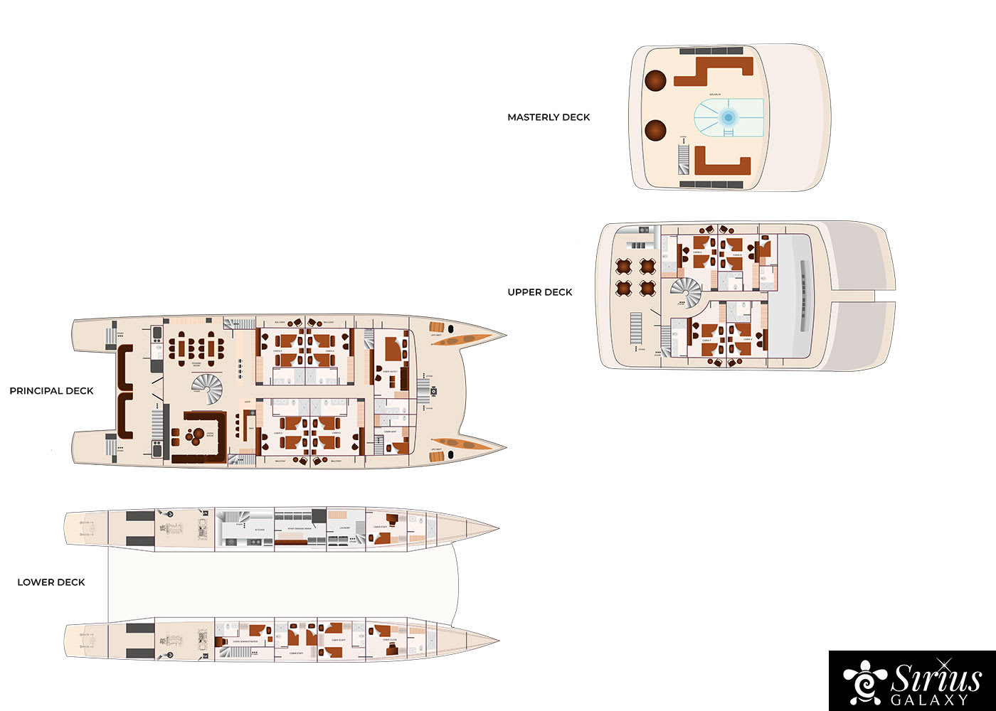 With its sleek design and dark color palette, the luxurious, newly-built Galaxy Sirius catamaran is an excellent choice if you’re looking for an exceptional and exclusive experience in Galapagos Islands aboard arguably the best looking vessel sailing the islands.