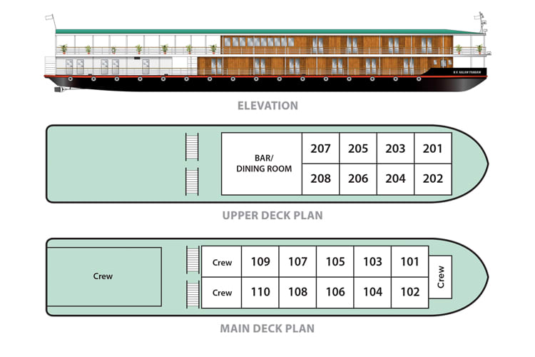 Please note that due to water levels, religious festivals, and other situations beyond our control, it is occasionally necessary to change our embarkation / disembarkation jetty. This may result in a longer transfer times and may also require access to / from the ship via a smaller 'country boat.