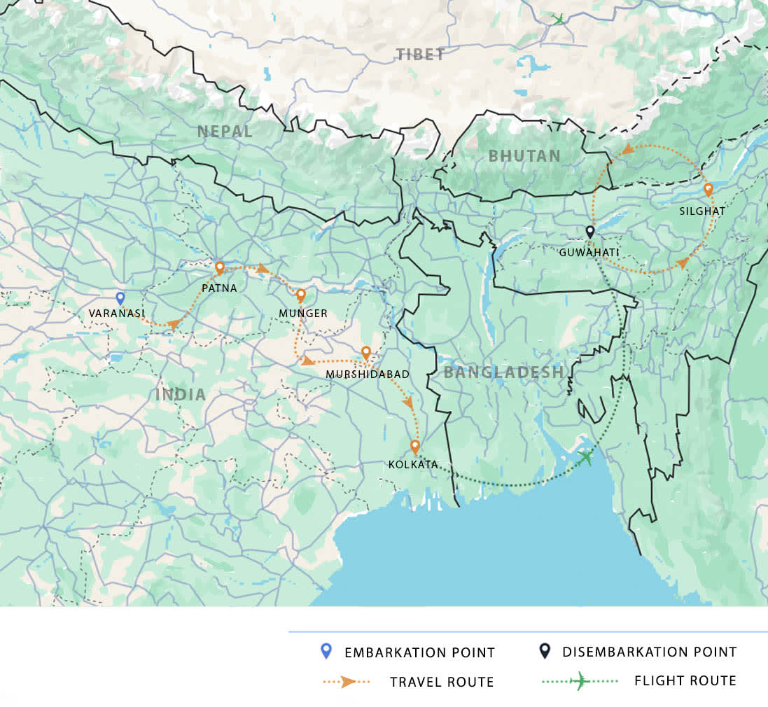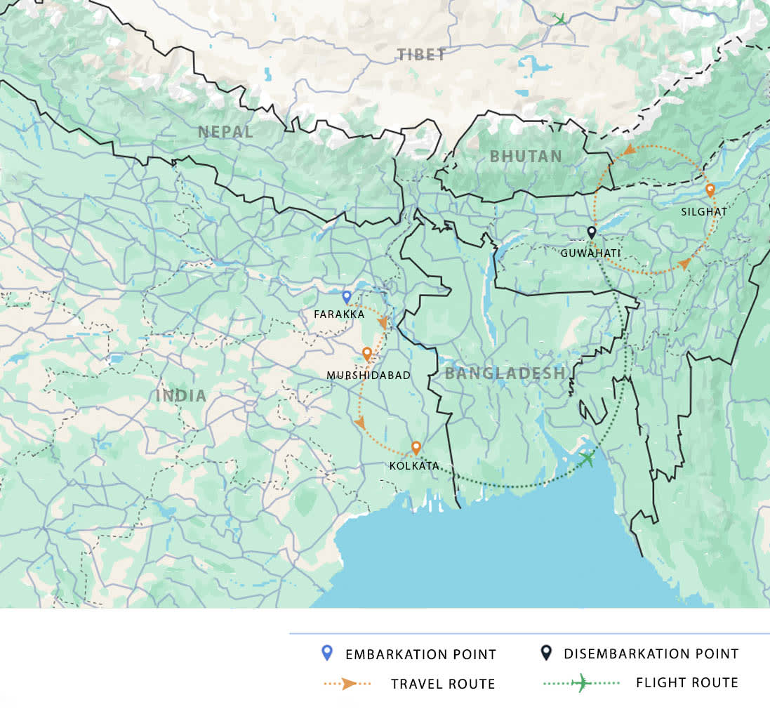 AM: Disembark after breakfast and transfer to your hotel or Guwahati airport (15km / 30 min). Transfers can be arranged as per your flight details with the latest departure from the ship at 10am.