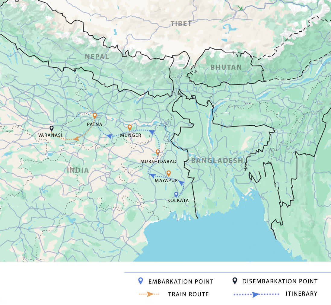 AM: After breakfast, disembark and receive a group transfer to your hotel or the train station in Farakka for your train journey back to Kolkata.