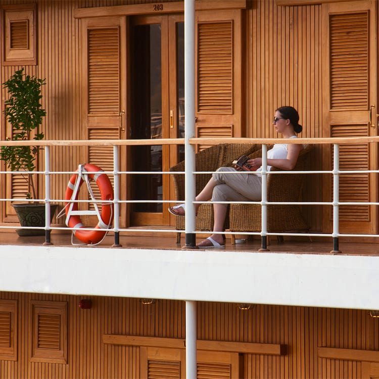 The Upper Deck cabins are slightly fewer in number but equally spacious and well equipped to ensure guests have a comfortable stay. Whichever cabin you choose, guests can expect air conditioning, kimonos and slippers, an electric mini safe, multi-configuration plugs, and generous closet space and under-bed storage, not to mention unlimited mineral water.
