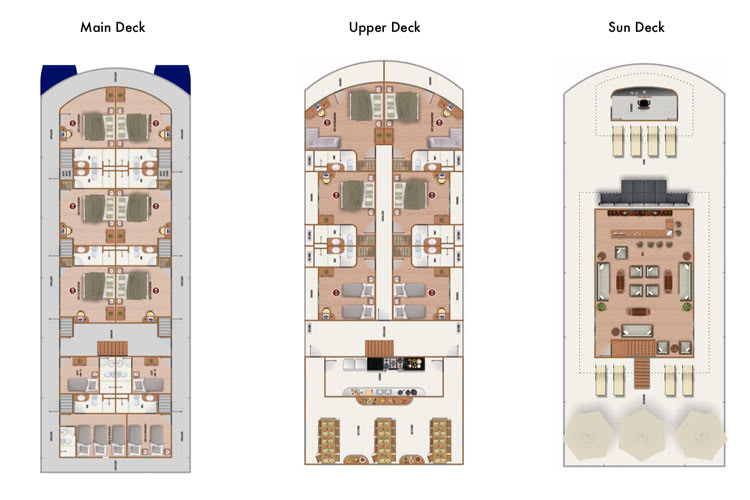 These air-conditioned cabins are so comfortable and specially designed for guests to relax and enjoy the magnificente of the Amazon. The Classic Cabins come equipped with a desk, bathroom with shower and toilet. The private ensuite facilities are fully equipped with hot water, a hairdryer to help keep guests refreshed.
