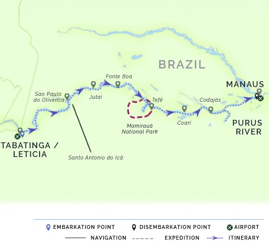 All itineraries are subject to change due to seasonal weather conditions (and resultant variations in river and tributary water levels) affecting accessibility to locations. Thus navigation routes, times and excursions may need to be modified at the cruise captain’s or your guide's discretion.