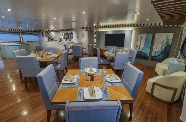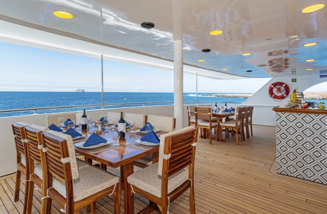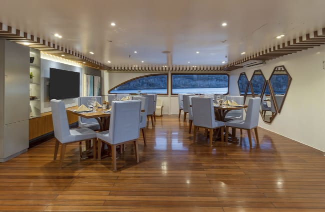 From breakfast, lunch and dinners served on either the Sundeck or indoor dining area, to the library filled with materials on the islands and Ecuador, the Ocean Spray offers everything you could wish for to make the most of your moment in the Galapagos.
