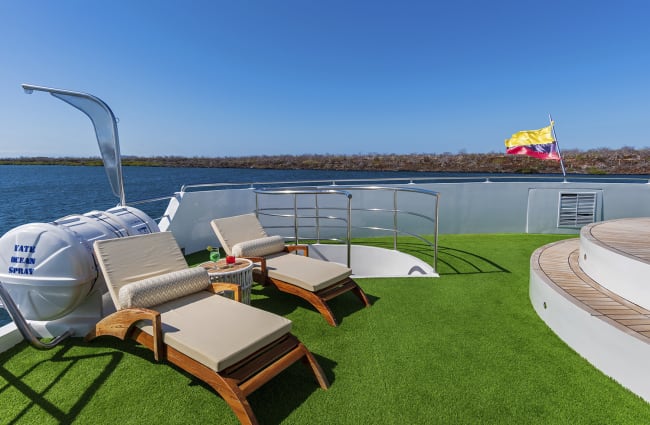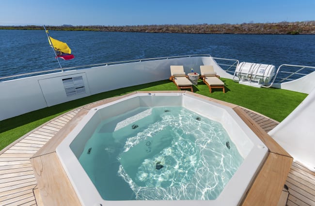 Cocoon yourself in the distinctive sophistication of the 16-passenger Ocean Spray luxury cruise yacht. While exploring the Galapagos Islands, guests of all ages are treated to 180-degree panoramic views, alfresco dining, and high-end furnishings and amenities.