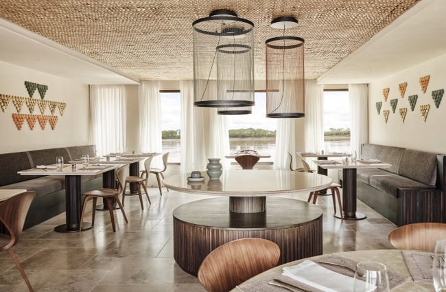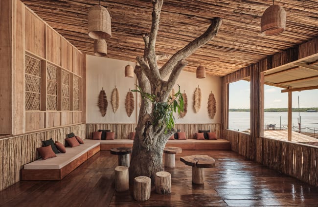 A Pure Amazon cruise is an experience of refinement and immersion. With discreetly sumptuous interiors by renowned architect Adriana Granato, her elegant social spaces and 12 cabins (10 double suites, two singles) are decorated in muted tones of earth, sky, forest and water, while traditionally patterned Peruvian textiles introduce an element of joyful vibrancy, and panoramic windows throughout offer endless views of the rainforest.