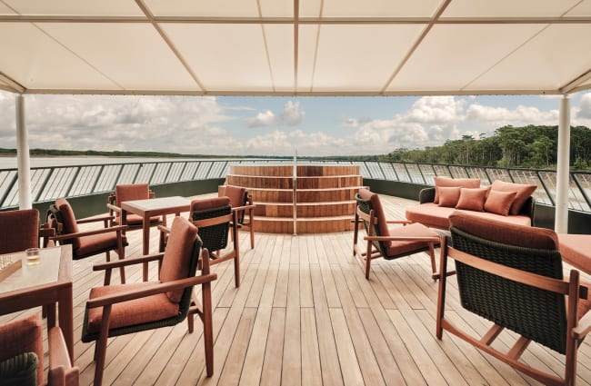 Guests are treated to a one-to-one staff-to-guest ratio, ensuring impeccable service. Social spaces include an open-air sundeck with Jacuzzi, a shaded Veranda Lounge bar, and a fine dining restaurant where Peruvian gastronomy takes center stage (children’s menus are available). After a day of exploration, unwind with a cocktail in the Jungle Lounge or with a good book in the Map Room, or indulge in a wellness treatment or some exercise in the spa and gym. Complimentary Starlink Wi-Fi allows guests to stay connected, though the allure of the jungle will keep them captivated.