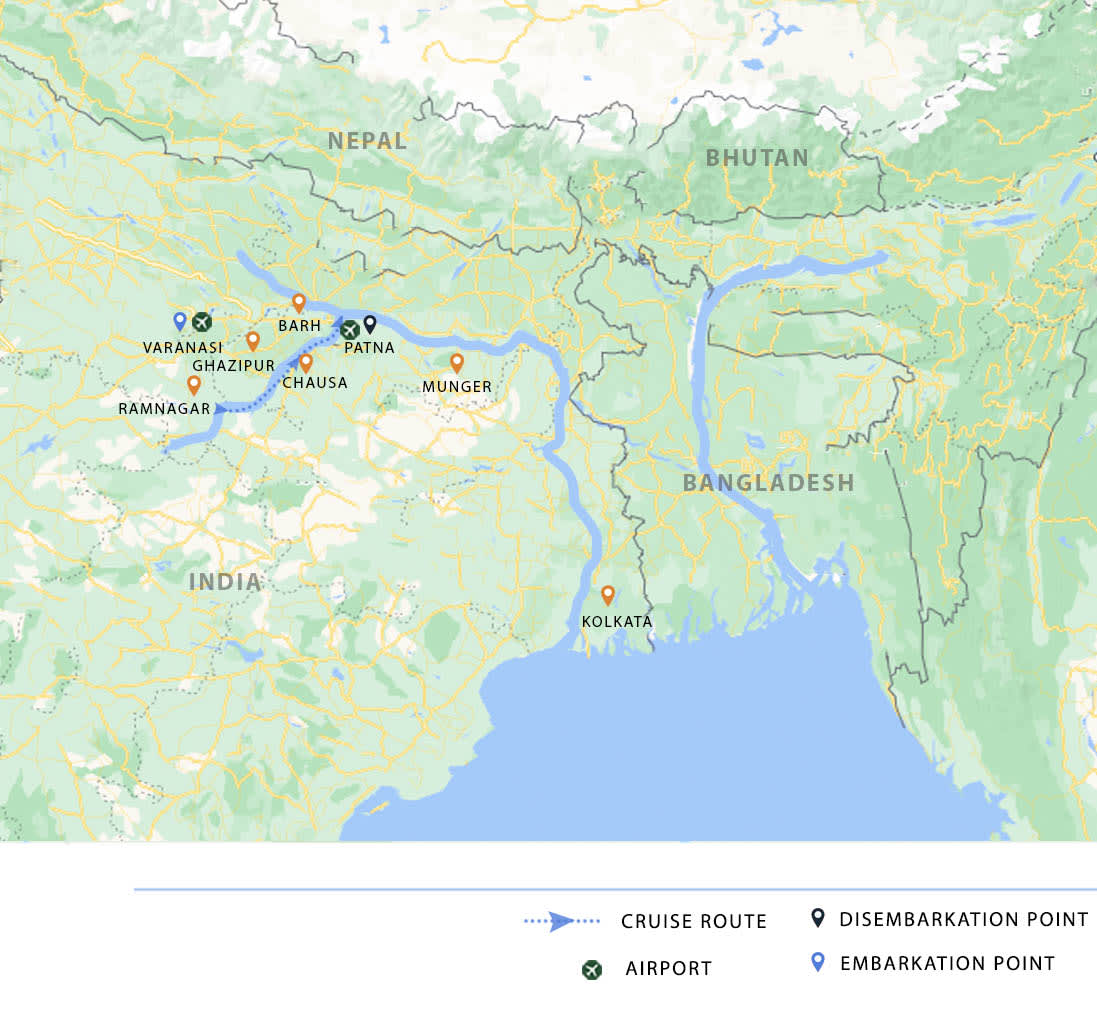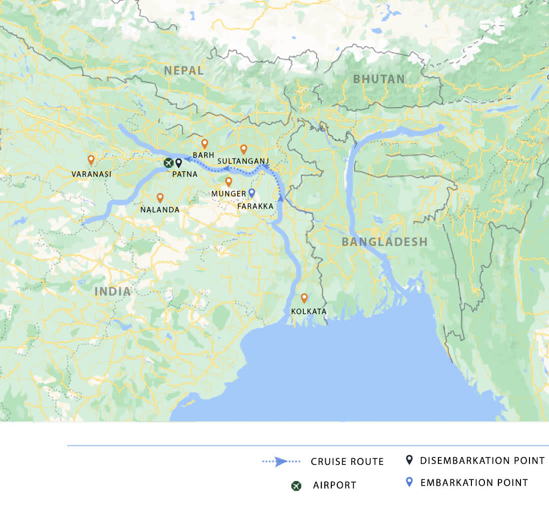 AM: After breakfast, disembark and transfer to Patna airport or railway station.