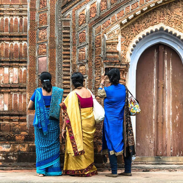 AM: This morning you’ll visit the delightfully sleepy village of Baranagar and take a tranquil walk through fields to visit three gorgeous miniature terracotta temples. This is certainly rural India at its most idyllic.