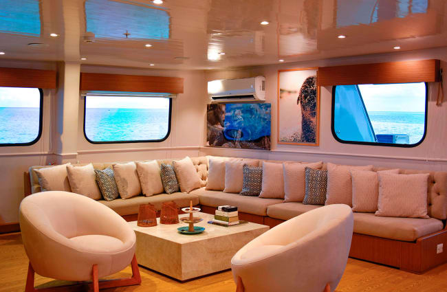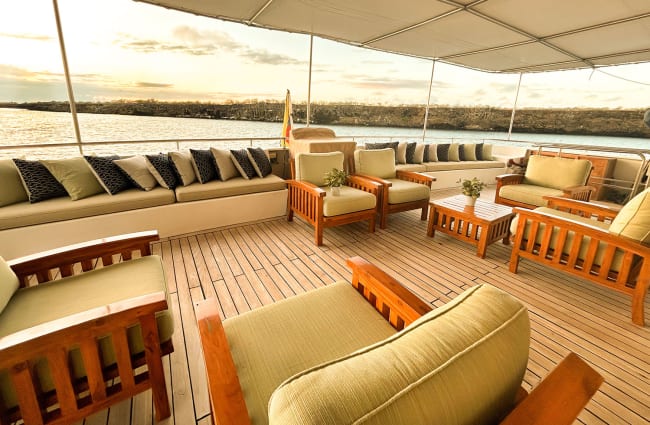 At 90 feet in length, the Seaman Journey is a boutique ship that is big on both style and comfort. The intimate size makes this the ideal vessel for bonding with family and friends and building a sense of camaraderie with fellow sailors. The ship’s spacious sundeck invites you to take a midday nap on a lounge chair, flip through the pages of a good book while keeping an eye out for wildlife spottings, or watch the sun set into the ocean.