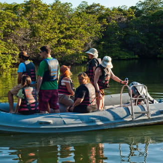 AM: Enjoy a dinghy ride to Black Turtle Cove on Santa Cruz's north coast. The boat will explore the mangrove-protected cove with the engines off. In the calm waters, you may see sea turtles feeding and mating, along with black-tip, white-tip, and Galapagos sharks. Spot groups of spotted rays, golden cow rays, egrets, and herons. After the visit, you will be transferred to Baltra airport for your flight back to the mainland.