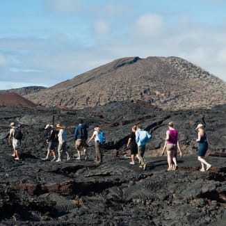 AM: Punta Moreno sits on Isabela Island's west coast, at the entrance of the Bolivar channel. The trail follows a Pahoehoe lava flow into coastal lagoons. Spot various bird species including blue footed boobies and flightless cormorants, near the lakes and mangroves.