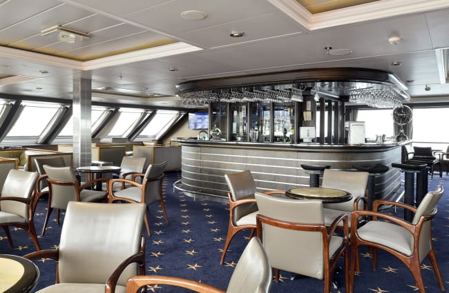 Stella's two AA Superior cabins are on the 3rd deck of the ship. These cabins provide a panoramic view with floor-to-ceiling windows and are part of the most spacious cabins allowing passengers more room than the standard cabins. Each cabin has a chair, bedside table, desk, twin fixed reading lights, a closet (with lifejackets), a safe and a dressing mirror. Every cabin provides water bottles (which you can keep). There are two plug sockets with three round pins - (note these are not compatible with either U.S. or U.K. plugs and you will need to bring an adaptor). Bathrooms are equipped with hairdryers and Algotherm cosmetics which are replenished daily.