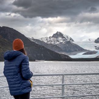 A stunning expedition ship offering intimate, all-inclusive exploration of the Patagonian fjords.