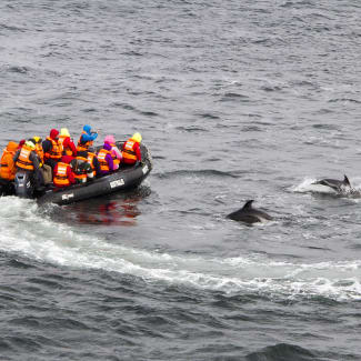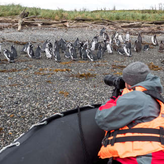 PM: After lunch, we board the Zodiacs again for a close-up view of the Magellan penguins that inhabit the tiny islands. More than 4,000 penguins use Tucker as a place to nest, give birth and nurture their chicks. Many other bird species also frequent the area including king cormorants, oystercatchers, Chilean skuas, kelp geese, dolphin gulls, eagles and even the occasional Andean condor. In September and April -- when the penguins live elsewhere -- this excursion is replaced by a short walk to a glacier at nearby stunning Brookes Bay.