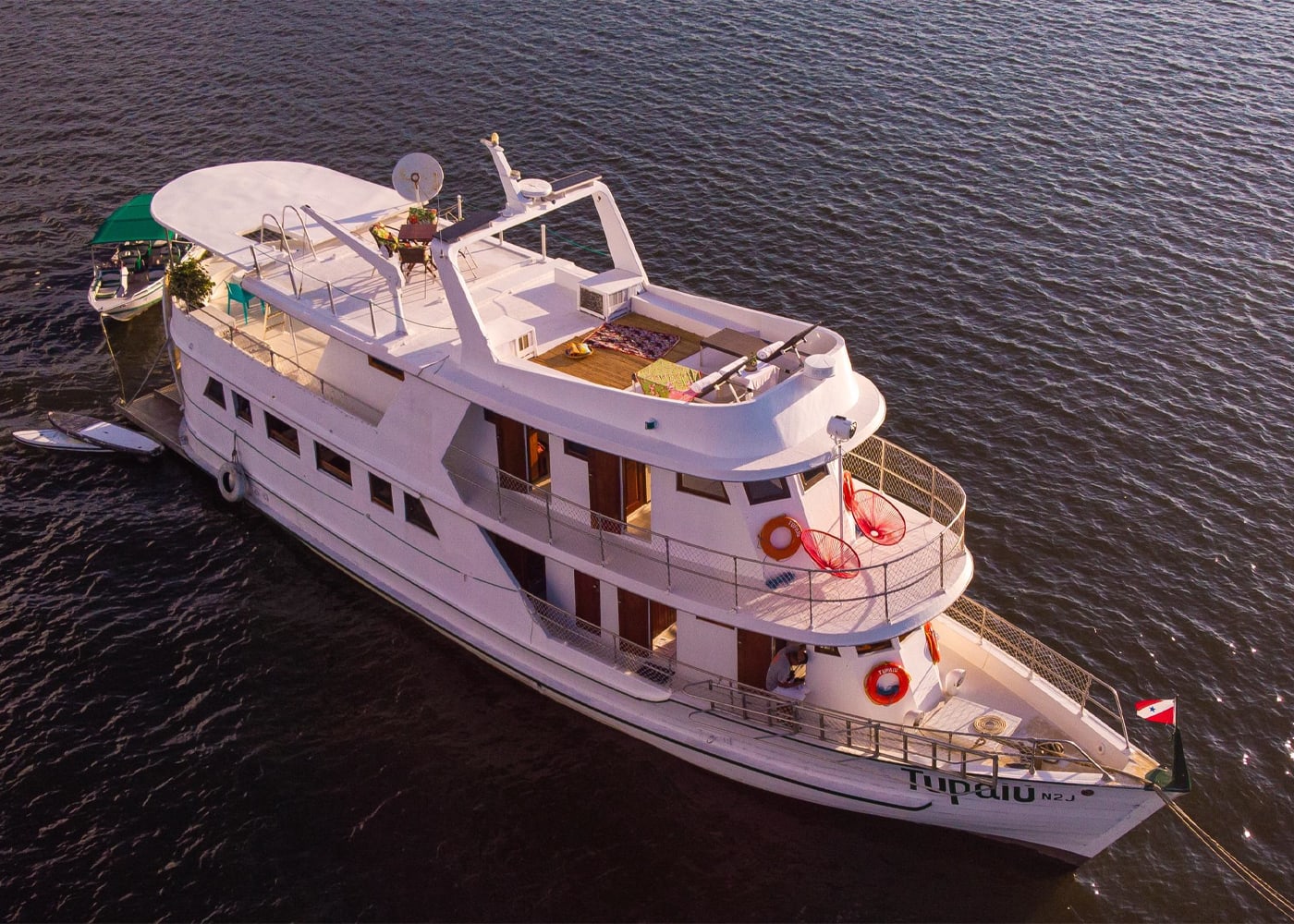 Note: If your group is larger, Tupaiú has two larger sister boats—Belle Amazon (8 cabins, up to 16 guests) and Amazon Dolphin (11 cabins, up to 22 guests)—which can be chartered instead or in addition.