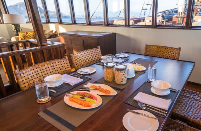 Guests can dine at their leisure in the aforementioned air-conditioned dining room or on the outdoor deck, where there’s even an onboard barbecue. Meals and an extensive list of non-alcoholic beverages are all-inclusive while alcoholic beverages including wines, beers and cocktails are available for an additional charge.