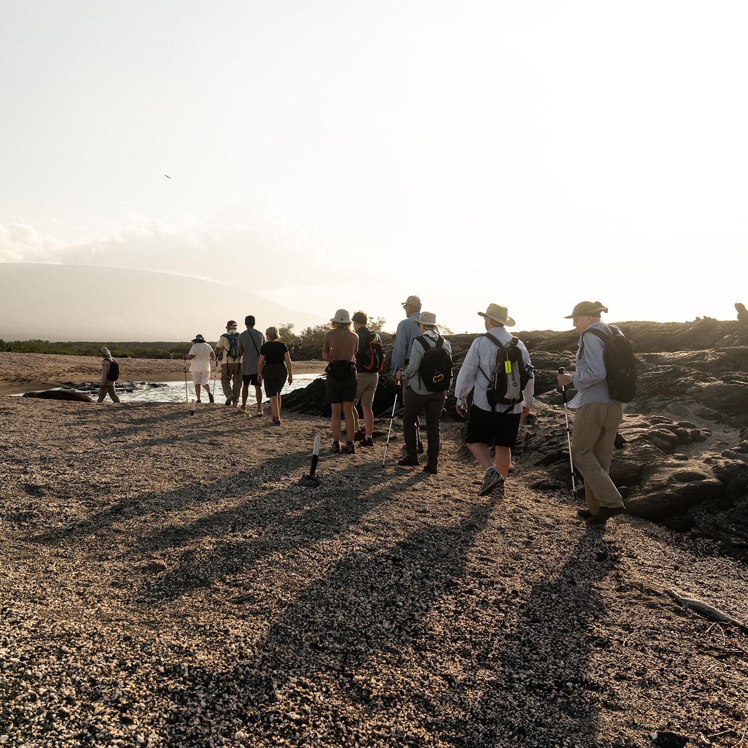 AM: For those who missed the equatorial crossing the night before, ask our crew for your very own equator crossing certificate -although this is usually reserved for our young explorers, even the young at heart will proudly be able to take this home! This morning we disembark on the black sand beaches of Puerto Egas, northwest of Santiago Island. Once the location of a salt mine (1967), today you can take a two and a half-hour hike to find the abandoned mine turned into a shallow saltwater lake. For those who prefer to stay by the beach, you will be able to walk the intertidal zone to the fur seal grottos or snorkel to watch sea turtles, sea lions, and white-tipped sharks.
