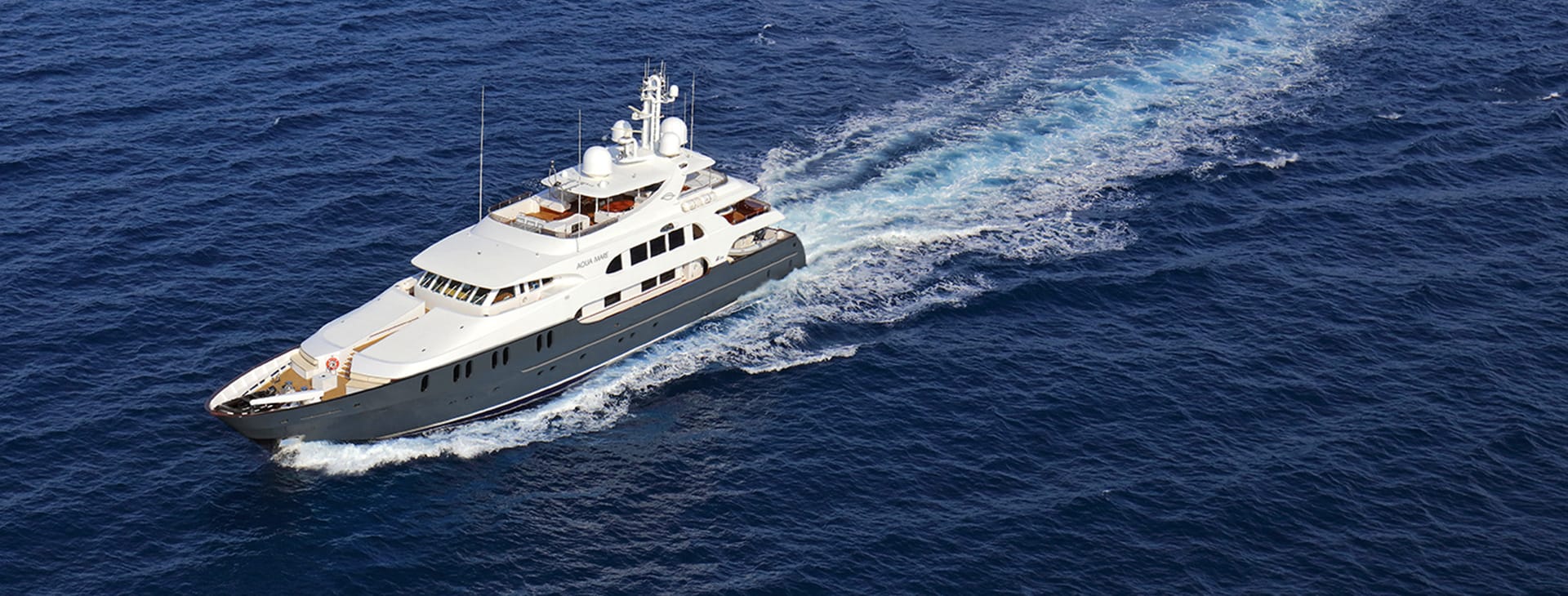 Aqua Mare yacht accommodates up to 16 guests in seven large and splendid designer suites, including the 861-square-foot owner’s suite for a maximum of four guests. All are characterized by wall-to-wall carpeting, are inclusive of a cruise ship steward, full walnut veneer wood paneling, big windows that allow plenty of natural light, and ensuite bathrooms fitted with Italian marble and a spacious walk-in shower plus a rain shower.