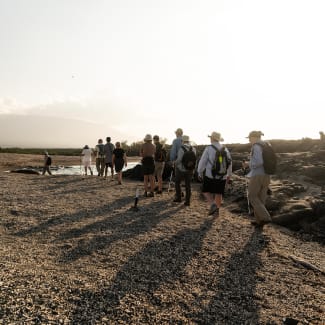 AM: For those who missed the equatorial crossing the night before, ask our crew for your very own equator crossing certificate -although this is usually reserved for our young explorers, even the young at heart will proudly be able to take this home! This morning we disembark on the black sand beaches of Puerto Egas, northwest of Santiago Island. Once the location of a salt mine (1967), today you can take a two and a half-hour hike to find the abandoned mine turned into a shallow saltwater lake. For those who prefer to stay by the beach, you will be able to walk the intertidal zone to the fur seal grottos or snorkel to watch sea turtles, sea lions, and white-tipped sharks.