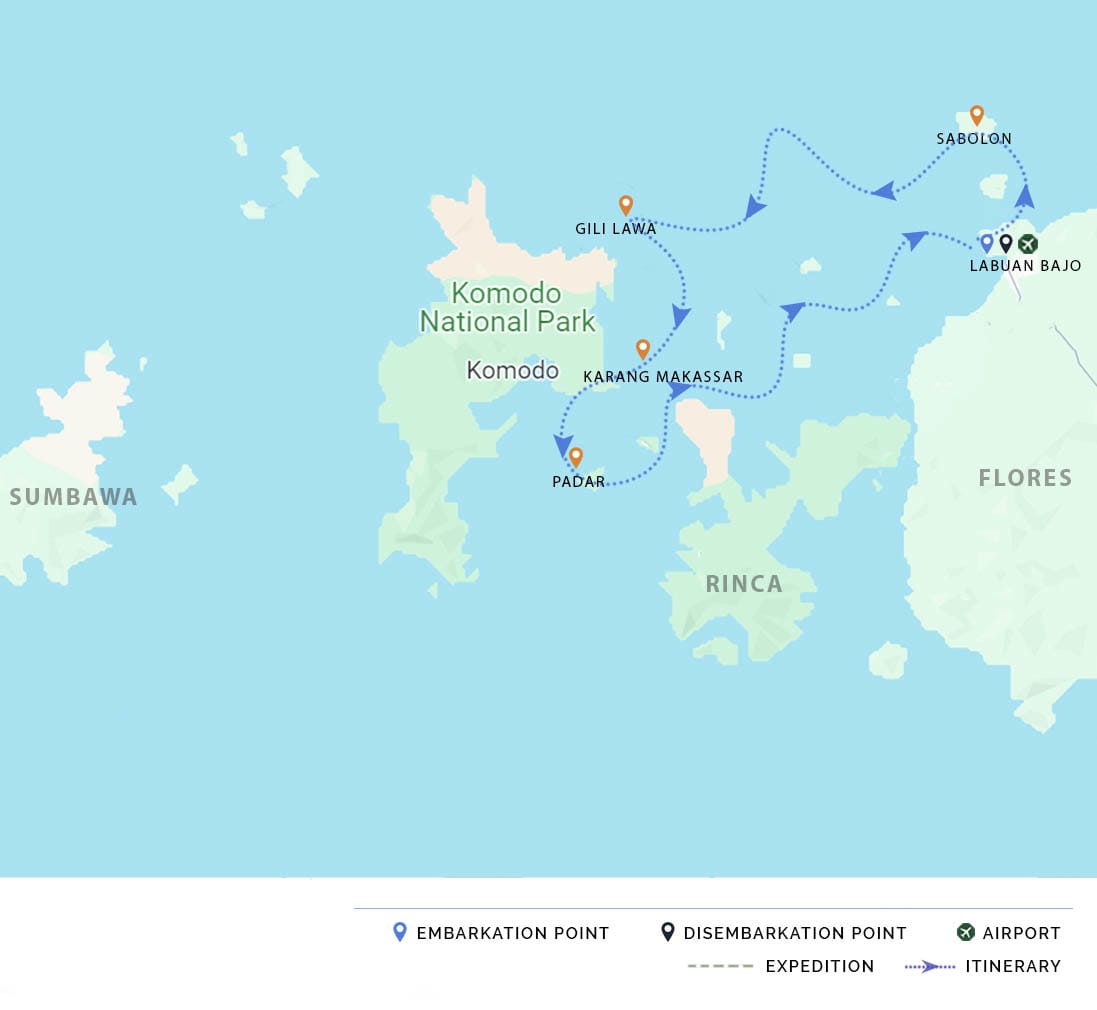 AM & PM: Upon arrival at Labuan Bajo Airport, we will transfer to the harbor, where we board our vessel. We will sail for one hour while your cruise director provides a general briefing to familiarize you with the vessel and our safety procedures. We will then enjoy a swim along the beautiful beach of Kelor Island before trekking through the monsoon forests of Rinca Island, hoping to catch a glimpse of the elusive Komodo dragon.