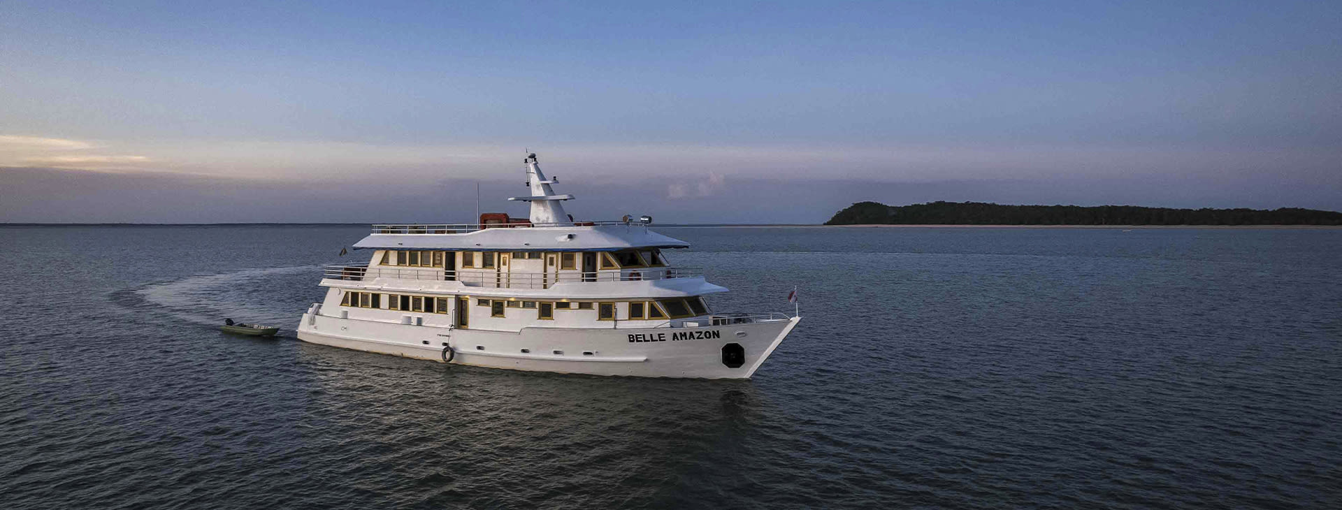 Note: If your group is a smaller or larger, the Belle Amazon has two sister boats—Tupaiu (4 cabins, up to 8 guests) and Amazon Dolphin (11 cabins, up to 22 guests)—which can be chartered instead or in addition.