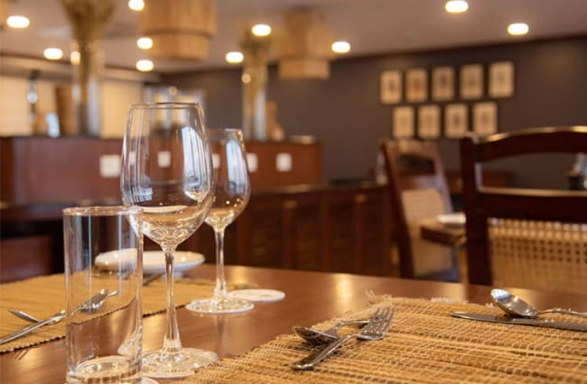 The upper deck cabins, whether in twin or double configuration, offer generous space for guests to unwind. Embracing the essence of Assam, the decor exudes a nostalgic charm with hints of colonial elegance, accentuated by traditional Assamese designs adorning hand-woven cotton fabrics. Each standard cabin on the ABN Charaidew II features French balconies, inviting guests to enjoy scenic views and fresh air as they sail along.