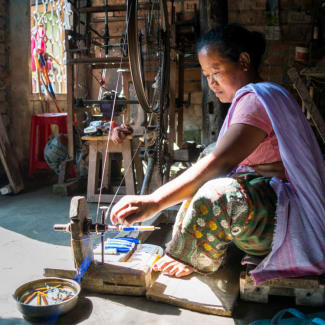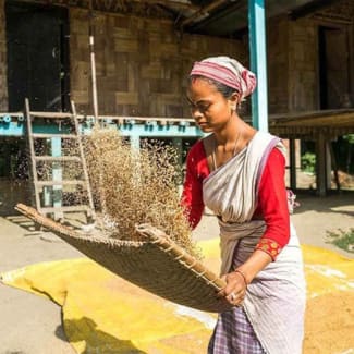 PM: Meet at Guwahati airport and embark your ship by mid-afternoon close to the great Saraighat Bridge. Enjoy lunch while cruising downstream to the little town of Sualkuchi, where the clatter of looms gives a clue to the town’s industry. Post-lunch, walk through the village and visit its silk-weaving workshops and observe the whole process of silk manufacture, from cocoon and spinning to dyeing and hand-weaving into exquisite mekhela chadars (a two-piece sari, the traditional attire of Assamese women).