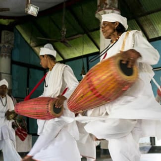 Shan by origin but converts to Hinduism, the Ahoms ruled Assam for some 700 years until the 1820s. Their culture and architecture is a unique and intriguing amalgam of India and Southeast Asia. You’ll see temples with stupa-like profiles and palaces of distinctive form. The temple tank here is believed to be the world’s largest hand-excavated reservoir and quite the feat of engineering, as you’ll see.