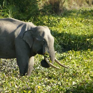 AM: After an early breakfast, you’ll be driven to Kaziranga’s Central Range for a morning jeep safari. Covering an area of approximately 430 sq kms, the UNESCO World Heritage Site of Kaziranga National Park is home to the world’s largest population of the Indian One-Horned Rhinoceros as well as the Indian Wild Water Buffalo. It has also earned the distinction of having the highest density of Royal Bengal Tigers (one every five sq. km.), making this park an incredibly rich biodiversity hotspot. With its marshy swamps and thickets of elephant grass, the park supports large populations of Indian elephants, Indian bison, swamp deer, and Capped Langurs.
